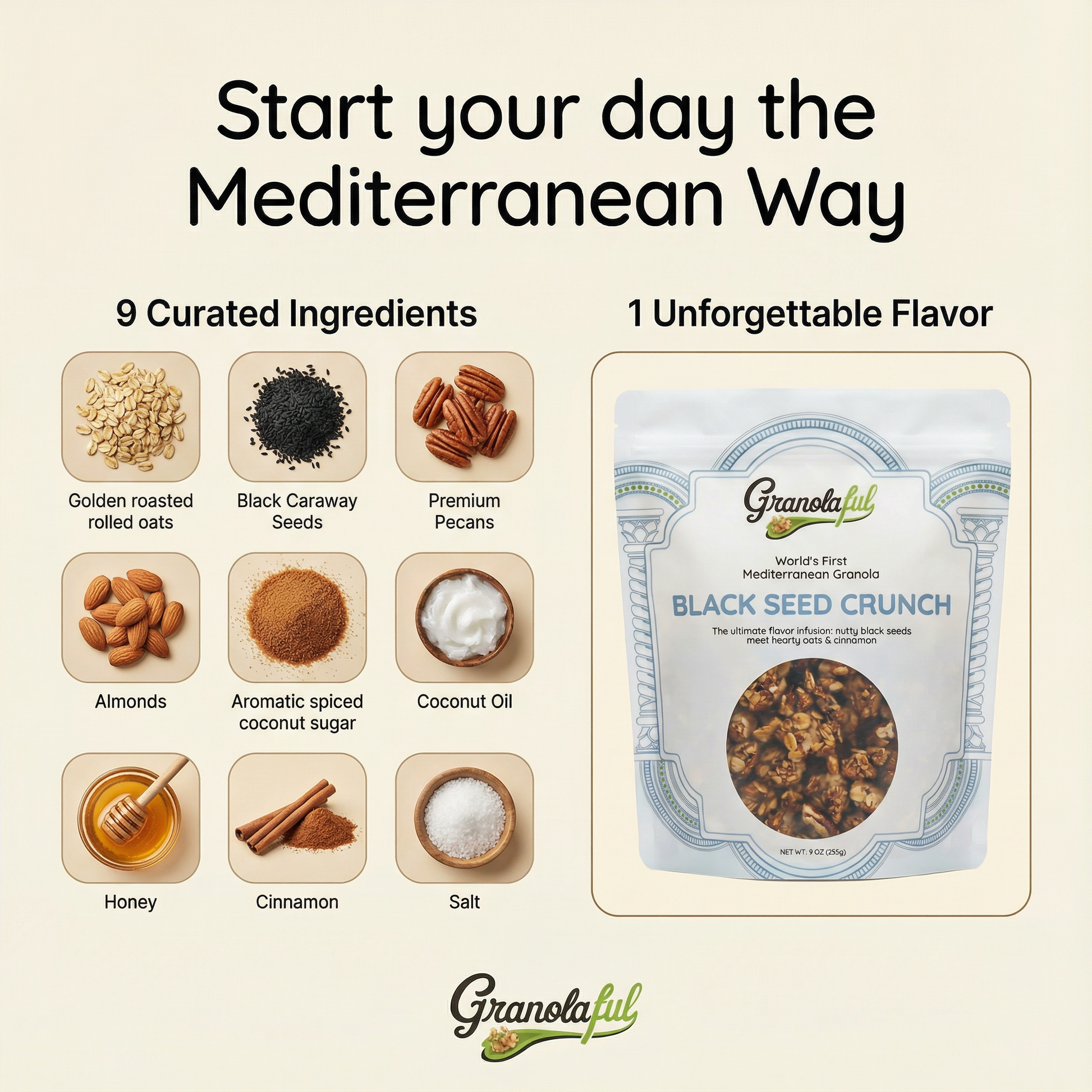 I tried the Granolaful Black Seed Crunch granola for the first time after picking it up at an open market, and it was truly delicious. The flavors are perfectly balanced with a light Mediterranean touch that makes it feel special. My wife and all three of my kids loved it, which doesn’t happen often, and I’m already planning to reorder. I highly recommend it if you’re looking for a wholesome granola with a unique and satisfying twist.