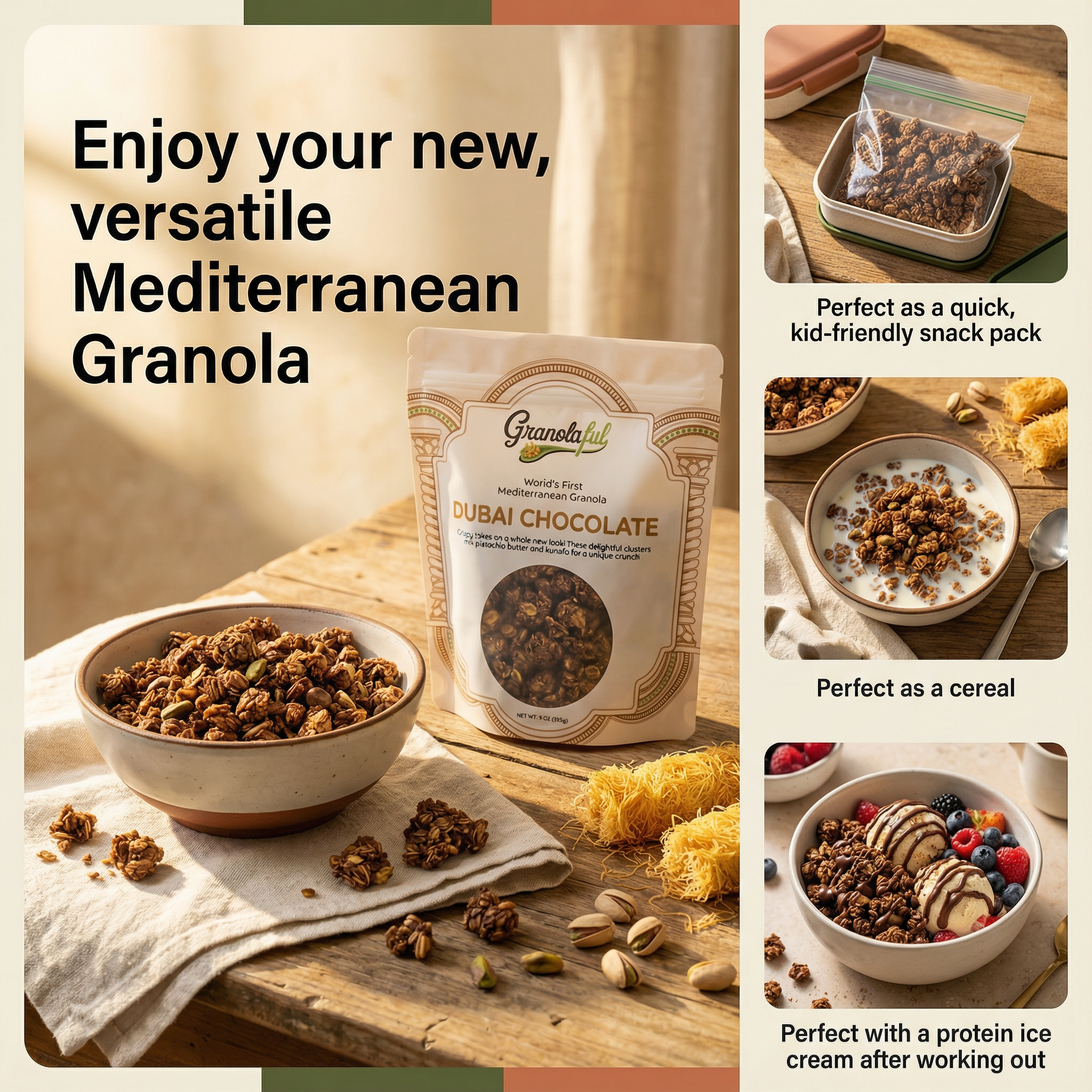 My favorite flavor from granolaful, the Dubai chocolate has become my daily yogurt topping. Naturally sweet without any of the “artificial” flavor you get from store-bought granolas. A perfect way to start your day!