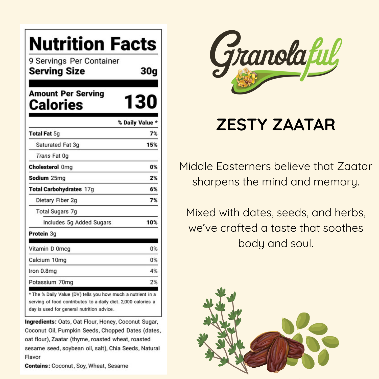 This is my second box of zesty Zaatar, and it impresses me how they can balance the granola with the Zaatar and the dates it has been an amazing addition to my Sohor