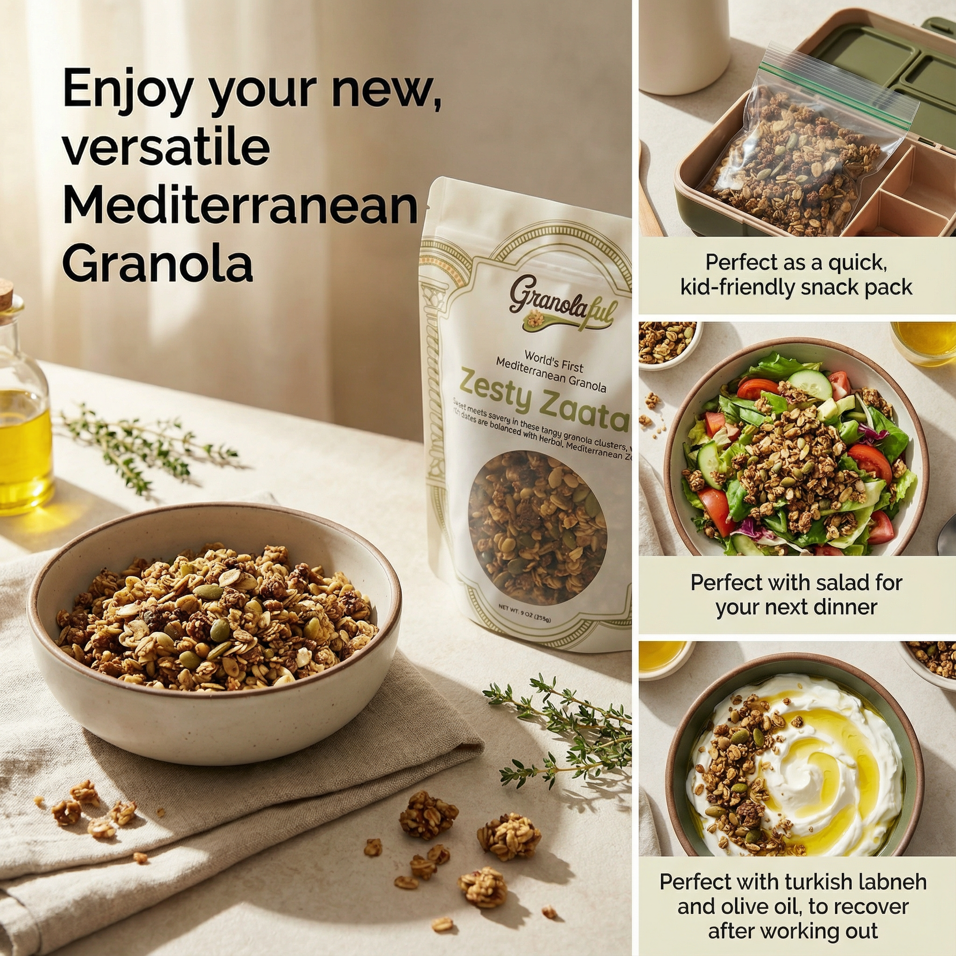 This is an amazing twist on granola! A clever, healthy, and tasty invention that is perfect as a snack, breakfast, lunch, on the go,.. whatever you want. The zesty zaatar is perfectly named as if describes exactly how it tastes. I also really enjoyed the "dubai chocolate" flavor and my kids absolutely devoured it! MUST TRY for anyone looking to replace the diabetes inducing cereals.